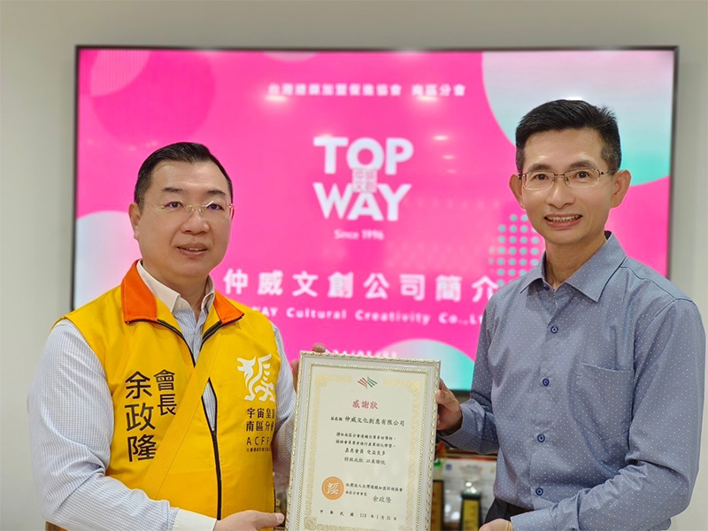 台灣連鎖加盟促進協會南區分會,蒞臨仲威文創高雄總公司參訪交流,邀請何正良總經理演講分享。